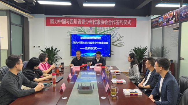 【原文链接:四川省青少年作家协会】 为积极响应“全民阅读”的号召,推动广大青少年科学阅读,积极参与脑力运动,在全国读书日前夕,四川省青少年作家协会与脑力中国(国际脑力运动委员会中国事业总部)达成战略合作,四川省青少年作家协会作为脑力中国四川地区唯一官方合作单位在四川区域内推进与实施脑力中国行公益项目。 本次公益活动四川省青少年作家协会将通过四川省青少年作家协会“小作家班”合作基地校、四川省中小学生作文大赛、四川省青少年作家协会会员等优质资源大力推动《高效阅读术》、《高效记忆术》、《快速心算术》的视频课程、配套书籍(含电子书籍)、课程服务等公益捐赠活动,为青少年素质教育贡献力量。 省青作协素质教育中心主任魏振麒、副主任李阳,脑力中国副秘书长曹静、黄建参加签约仪式。